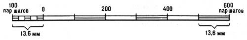 Рис. 99. Линейный масштаб в шагах для съемки в масштабе 1:10 000 (размер шага съемщика 0,68 м.)