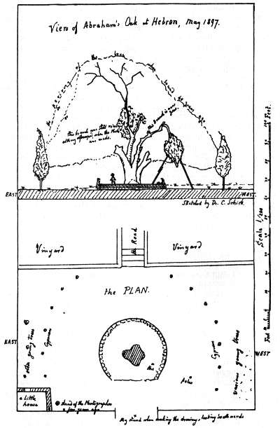 Мамврийский дуб в Айн-Себта. Рисунок Конрада Шика, май 1897 г. (Hepper, Gibson, 1994)