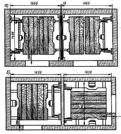 Рис. 2.2. Установка настилов в шахте при одинаковом (а) и разном (б) расположении направляющих