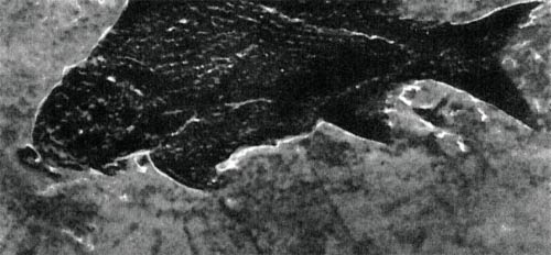 Фото 15. Рыба длиной 15 см (род Reelfieldius), сохранившаяся в углефицированном виде в результате естественной возгонки в триасовых сланцах (Дурхэм Конн, США).