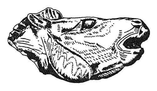 Рис. 81. Голова лошади, вырезанная из рога северного оленя художником эпохи самого конца позднего палеолита около 10 500 лет назад.