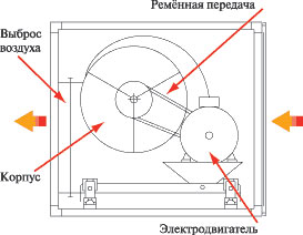 Производительность и свободный напор вентагрегата регулируется с помощью выбора передаточного числи ременной передачи, скорости вращения и мощности асинхронного двигателя с короткозамкнутым ротором. В дальнейшем регулирование производительности вентагрегата возможно или ступенчато при использовании двухскоростных электродвигателей в качестве привода, или плавно с помощью преобразователя частоты питающего напряжения.